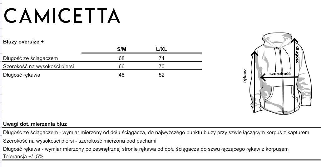 - Krój oversize, szerokość + 6 cm