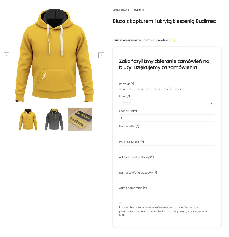 Obok platformy do składania zamówień firmowych przygotowaliśmy również sklep internetowy dla pracowników, którzy chcieli zamówić bluzy prywatnie. Bluzy zamawiane prywatnie były pozbawione naszywek NFC z powodu troski o bezpieczeństwo danych firmowych. Pracownicy mogli zamówić prywatnie również bluzy w wersji dziecięcej.