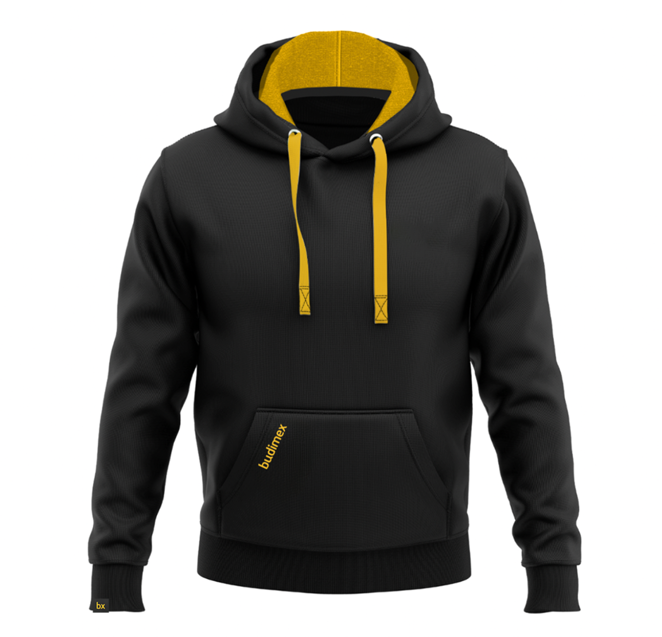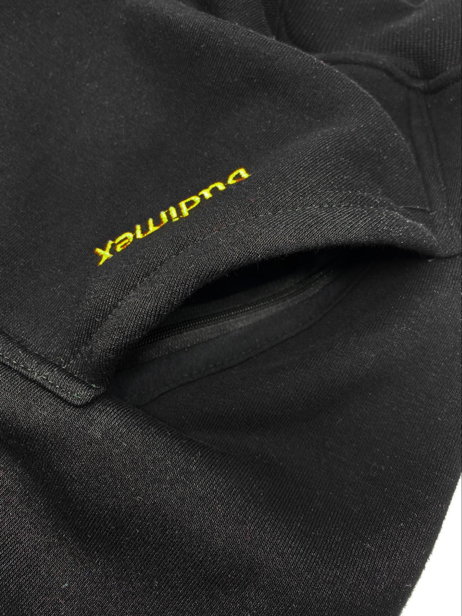 Klient wybrał finalnie bluzy w dwóch kolorach - czarnym oraz żółtym z kontrastowymi wstawkami, dyskretnym haftem na kieszeni oraz naszywką żakardową na ściągaczu rękawa, która później została zamieniona na tag NFC.
